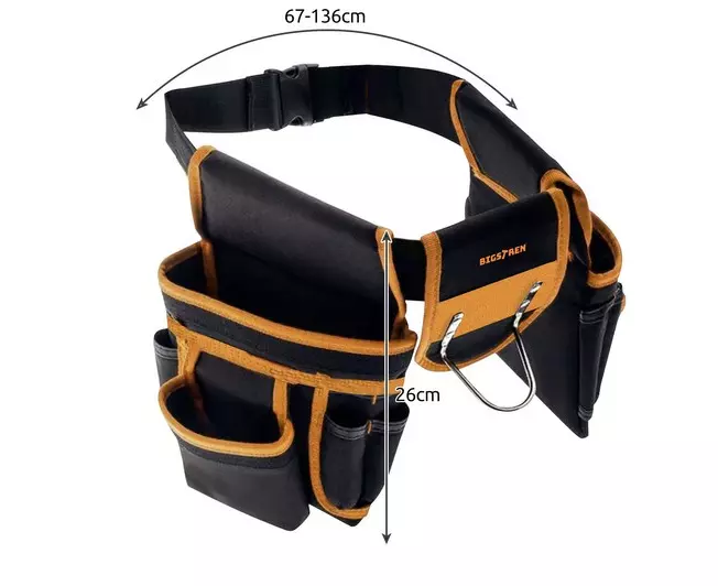 22 кишені, 2 петлі та тримач для молотка — усе під рукою: викрутки, ключі, рулетки, ножиці й навіть електроінструменти.