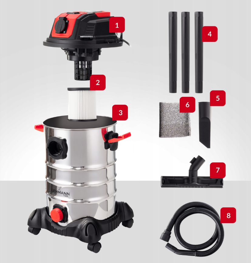 Промисловий пилосос Lehmann Force – це надійний і потужний помічник для будь-яких професійних і домашніх завдань. Він ідеально підходить для майстерень, будівництва, ремонту та складних завдань вдома. Цей пилосос об’єднує потужний двигун 1500 Вт, розетку для електроінструментів до 2000 Вт, універсальність сухого і вологого прибирання та спеціальну насадку для збору гіпсової та будівельної пилу.