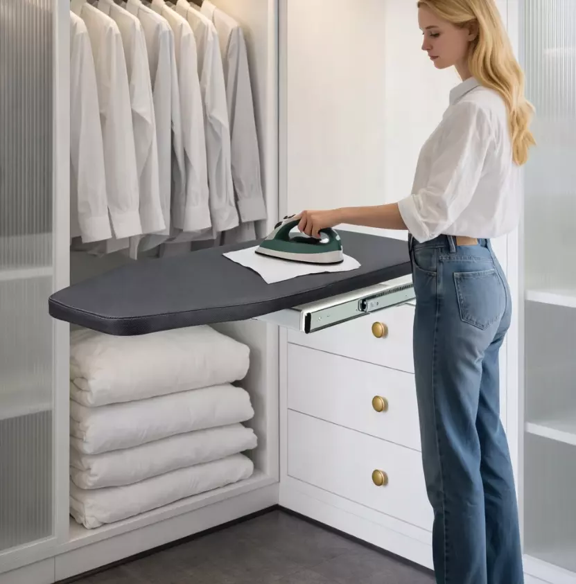 Ця вбудована складна прасувальна дошка – ідеальне рішення для тих,