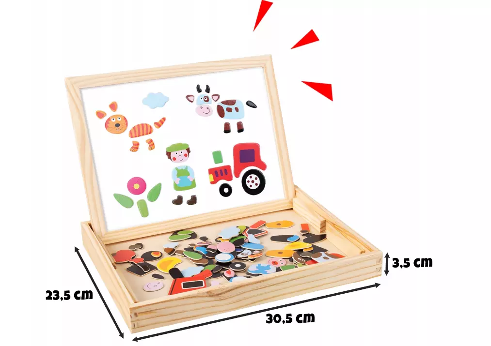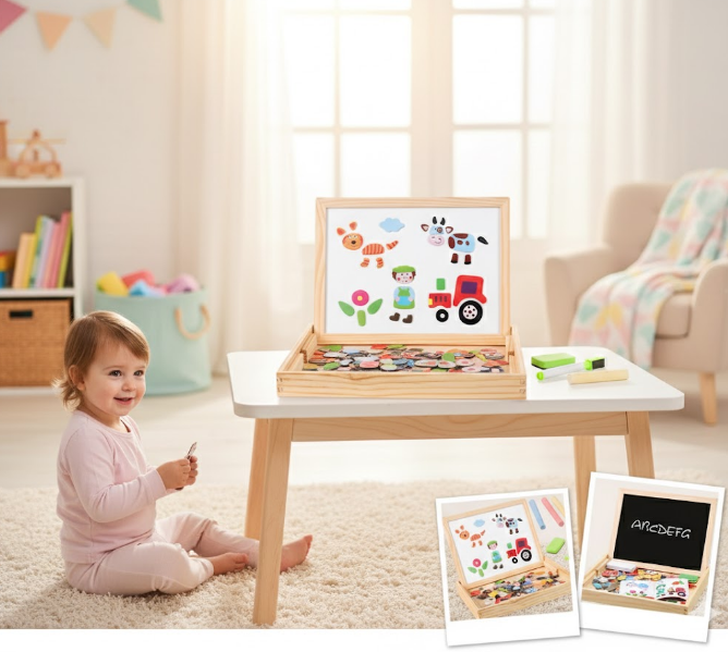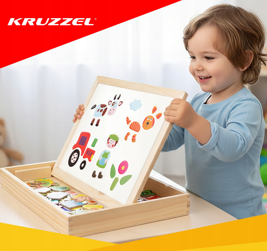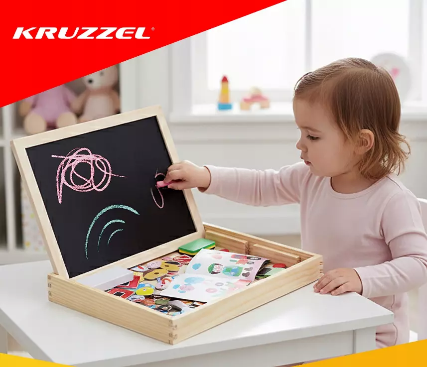 Двостороння магнітна дошка Kruzzel — це універсальна розвивальна іграшка для дітей від 3 років, яка поєднує творчість, навчання та веселу гру без екранів. Вона допомагає дитині розвивати уяву, логічне мислення, дрібну моторику та концентрацію уваги.