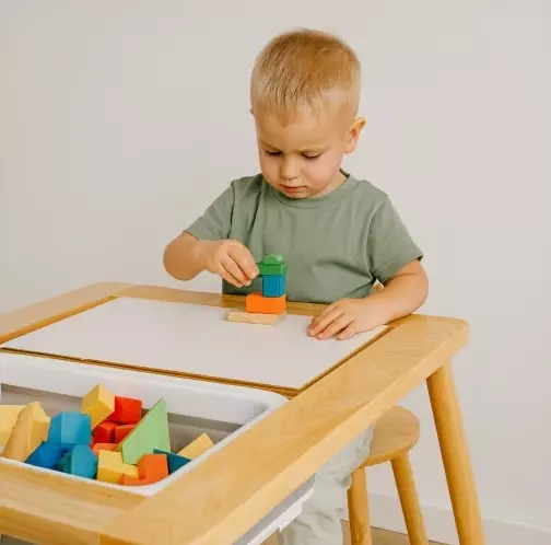 Розвиток та радість дитини — стіл створений за методикою Монтессорі: розвиває сенсорне сприйняття, дрібну моторику та творчі здібності, сприяючи самостійній грі та навчанні через досвід.