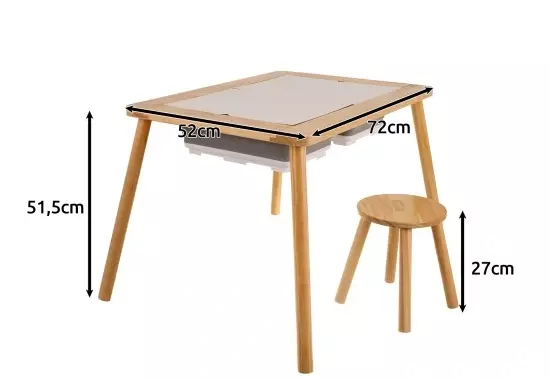 Адаптований для дошкільнят — комплект зі стільцем із масиву дерева забезпечує правильне ергономічне положення, оптимальна висота столу підходить дітям від 3 років.