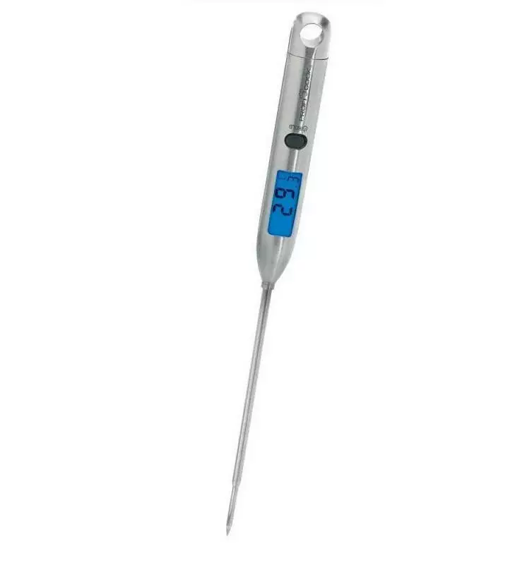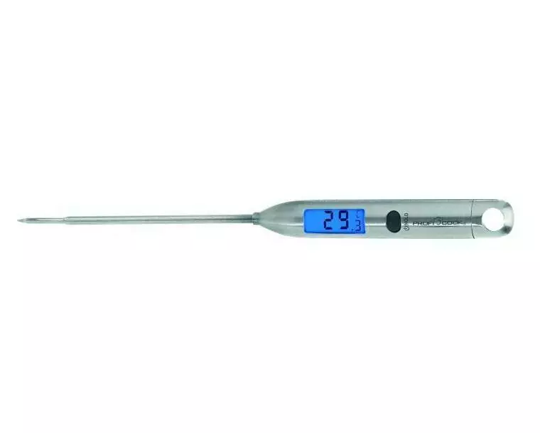 Цифровий термометр ідеально підходить для вимірювання таких продуктів, як жарке, м'ясо, риба чи напої, як вино, шампанське, ігристе вино. Характеристика: нержавіюча сталь, діапазон температури: - 45 ° C - 200 ° C, швидка реакція і час вимірювання, висока точність.