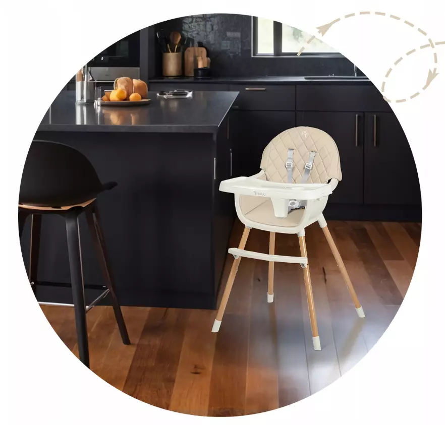 Функція трансформації – може використовуватися як високий стільчик для годування, низький стільчик або окремий стіл зі стільчиком.