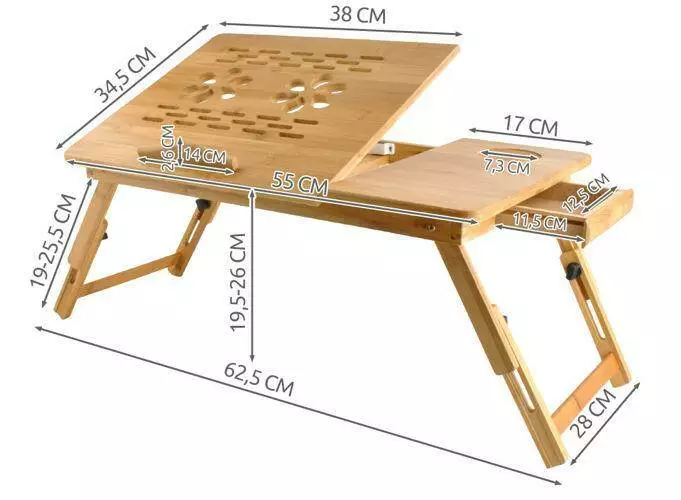 Зручний та практичний стіл для ноутбука з вентиляцією – аксесуар, який оцінять усі, хто любить працювати за комп'ютером у зручній, вільній позі. На жаль, використання ноутбука в ліжку або на дивані часто передбачає його утримування на колінах, що не тільки незручно, але може призвести до перегріву пристрою. Бамбуковий стіл для ноутбука витримає випробування як у ліжку, так і на дивані, а також у літаку, поїзді та автобусі. Завдяки отворам у верхній частині ми легко можемо сховатися улюбленим пледом і поставити комп'ютер або планшет на вентильований столик для ноутбука - він тут точно не перегріється. Отвори в стільниці розсіюють тепло, завдяки чому батарея комп'ютера прослужить довше, а пристрій не вийде з експлуатації.