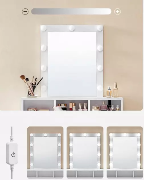 9 LED-лампочок рівномірно висвітлюють обличчя й допомагають акуратно нанести макіяж. Інтенсивність освітлення можна регулювати під власні потреби.