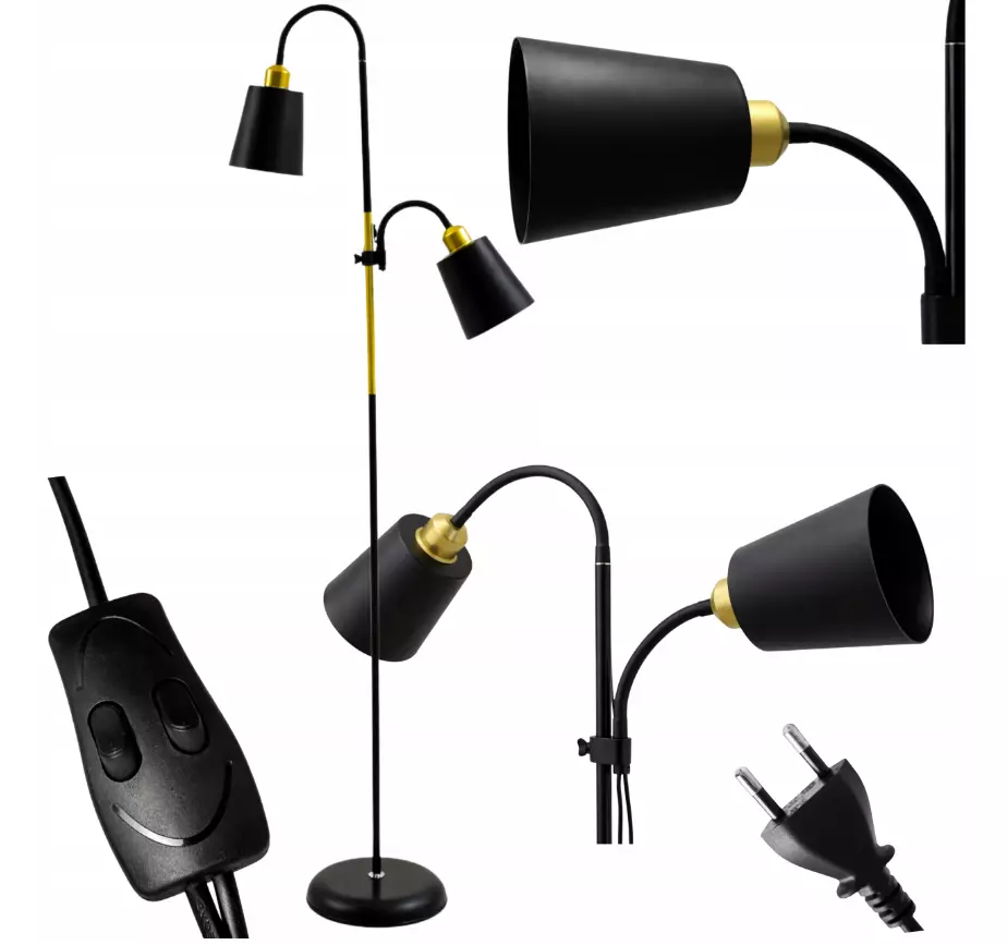 Сучасний підлоговий світильник 192 см, 2 × E27, чорний/золото