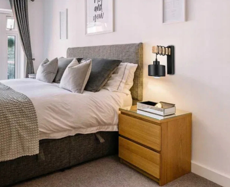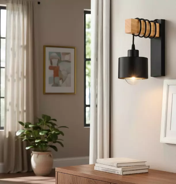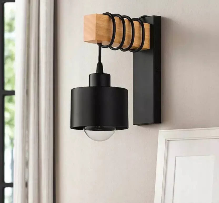 Цей настінний світильник — вдале поєднання натурального дерева та чорної сталі, яке створює атмосферу затишку й сучасної естетики. Він ідеально пасує для спальні, вітальні, коридору або декоративного підсвічування інтер’єрів у стилі лофт, скандинавському чи сучасному мінімалізмі.