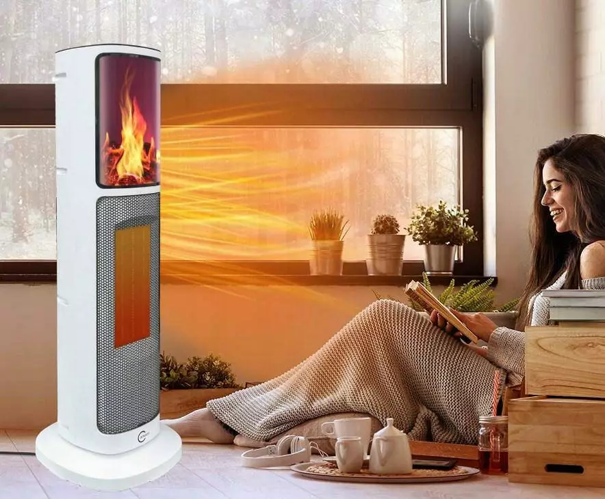 Сучасний колонний тепловентилятор Carruzzo поєднує високі технічні характеристики, стильний дизайн та інноваційні функції для комфортного обігріву будь-якого приміщення. Пристрій оснащений 3D камінним проєктором, який створює ефект живого полум’я, додаючи атмосферності та тепла, яке можна не лише відчути, а й побачити.