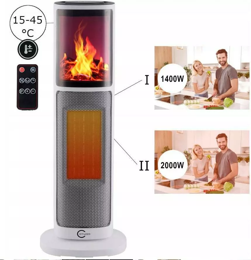 Carruzzo 2000W – це сучасне рішення для комфортного та безпечного обігріву, яке створює затишну атмосферу завдяки живому ефекту каміна та ефективно підтримує бажану температуру у будь-якому приміщенні.