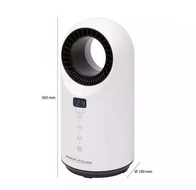 Практична керамічний тепловентилятор PC-HL 3086 від ProfiCare забезпечує оптимальну циркуляцію повітря і мобільний тепло у вашому домі або офісі. Тепловентилятор також підходить як штучний вентилятор, наприклад, у спекотні літні дні. За допомогою керамічного нагрівального елемента PTC можна нагрівати повітря, безпечно, тихим і ефективним способом. Завдяки низькому запалюванню, швидшому та ефективнішому обігріванню, а також тривалому терміну служби ви отримуєте міцний і виносний пристрій, який легко обігріє ваші кімнати. Керувати пристроєм окремо відповідно до ваших потреб за допомогою панелі керування датчиками. Звичайно, ви також можете керувати PC-HL 3086 за допомогою інфрачервоного пульта дистанційного керування, зручно з дивана.