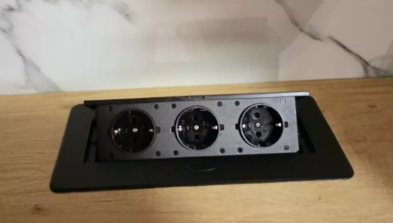 Багатофункціональне застосування — такі розетки однаково доречні не лише на кухні, але й у робочих кабінетах, офісах чи навіть конференц-залах. Монтаж можливий як у вертикальному, так і в горизонтальному положенні — на столі, робочій поверхні або кухонній стільниці.