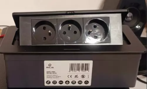 3 розетки в одному корпусі — конструкція містить три електричні розетки із заземленням, приховані в корпусі, що монтується в стільницю. Корпус виготовлений із міцного алюмінію з порошковим покриттям, що забезпечує довговічність і стильний вигляд.