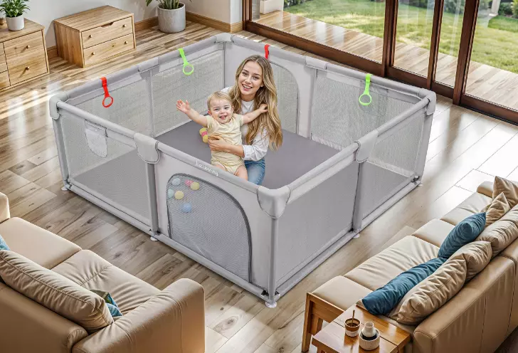 Манеж підходить як для домашнього використання, так і для активного дозвілля на свіжому повітрі — його можна встановити на підлозі, траві, паркеті чи плитці. Конструкція легко збирається й розбирається, а в складеному вигляді займає мінімум місця. У комплекті є сумка для зручного транспортування та зберігання.