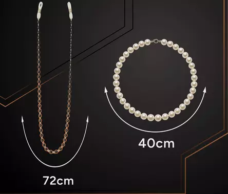 Окуляри на ланцюжку та намисто з імітації перлів додають шику та завершеності образу.