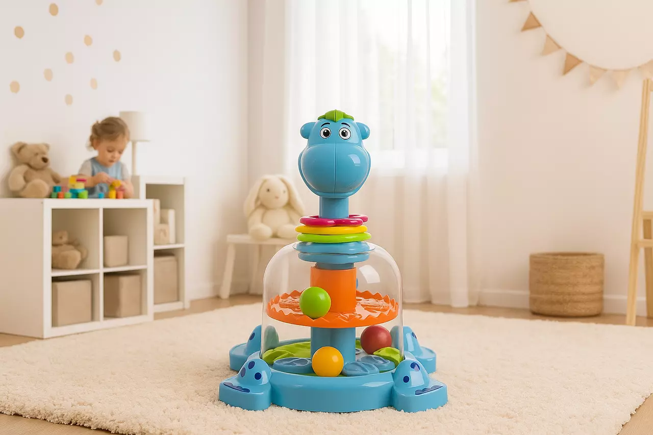 Розвиток навичок – натискання на голову й спостереження за кульками сприяють розвитку дрібної моторики, сили рук, координації рухів і логічного мислення. Дитина вчиться розуміти причинно-наслідкові зв’язки через гру.