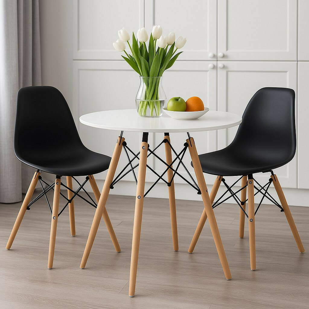 Комплект TODI 80 + OSAKA 2 шт. – ідеальне рішення для вашого дому. Круглий стіл забезпечує комфортне розташування для всієї родини, а стильні чорні стільці гармонійно доповнюють інтер’єр. Надійні матеріали, міцна конструкція та проста збірка роблять комплект зручним та практичним для щоденного використання.