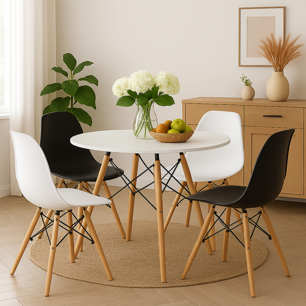 Вишуканий обідній стіл зі стільцями, поєднання чорного та білого