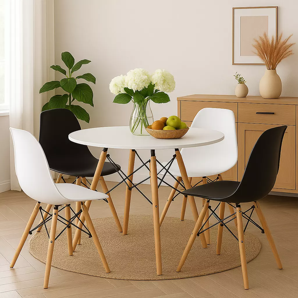 Комплект столової меблі OSKAR: стіл TODI 80 + 4 стільці OSAKA, білий/чорний