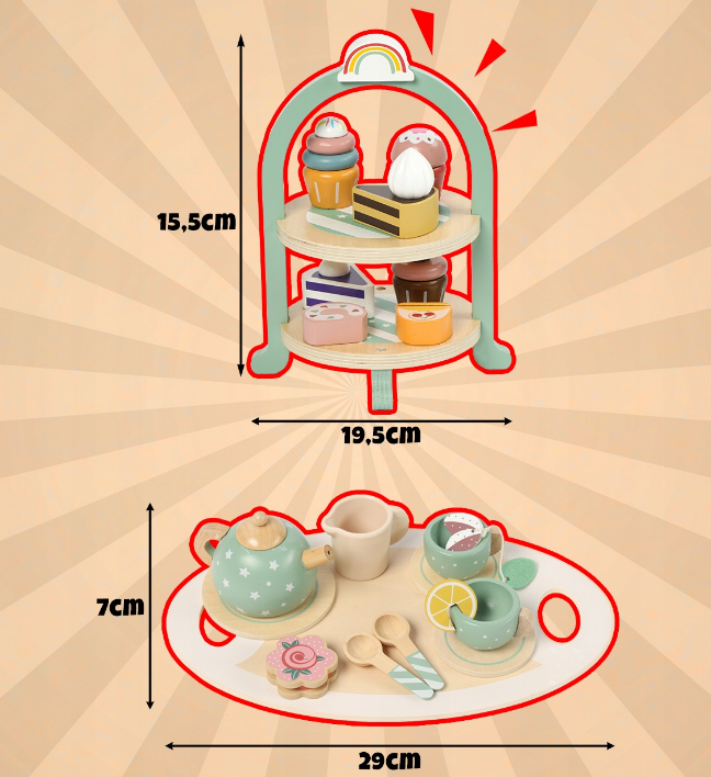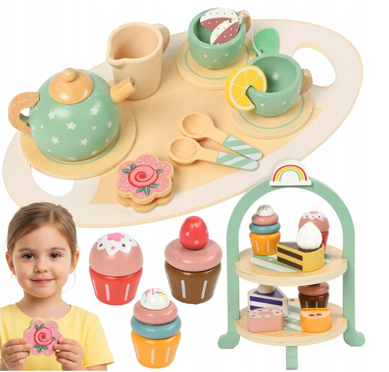 Дерев’яний чайний сервіз Kruzzel — це чарівний ігровий набір, який відкриває дітям світ солодощів, чаювань і святкувань. Витончені пастельні кольори, реалістичні десерти та якісні матеріали роблять гру захопливою, безпечною та пізнавальною.